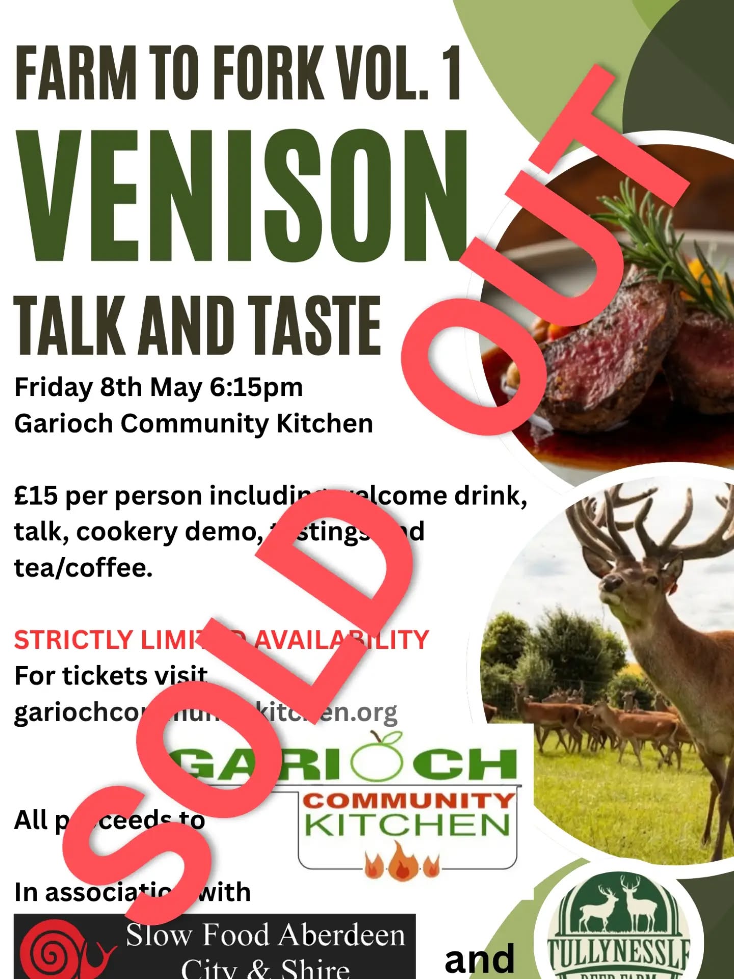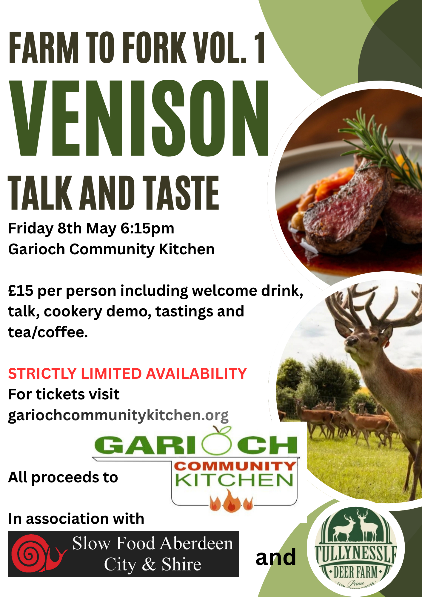 In association with Garioch Community Kitchen and Tulleynessle Deer Farm, our Talk and Taste event will take place on the 8th May at Garioch Community Kitchen in Inverurie.